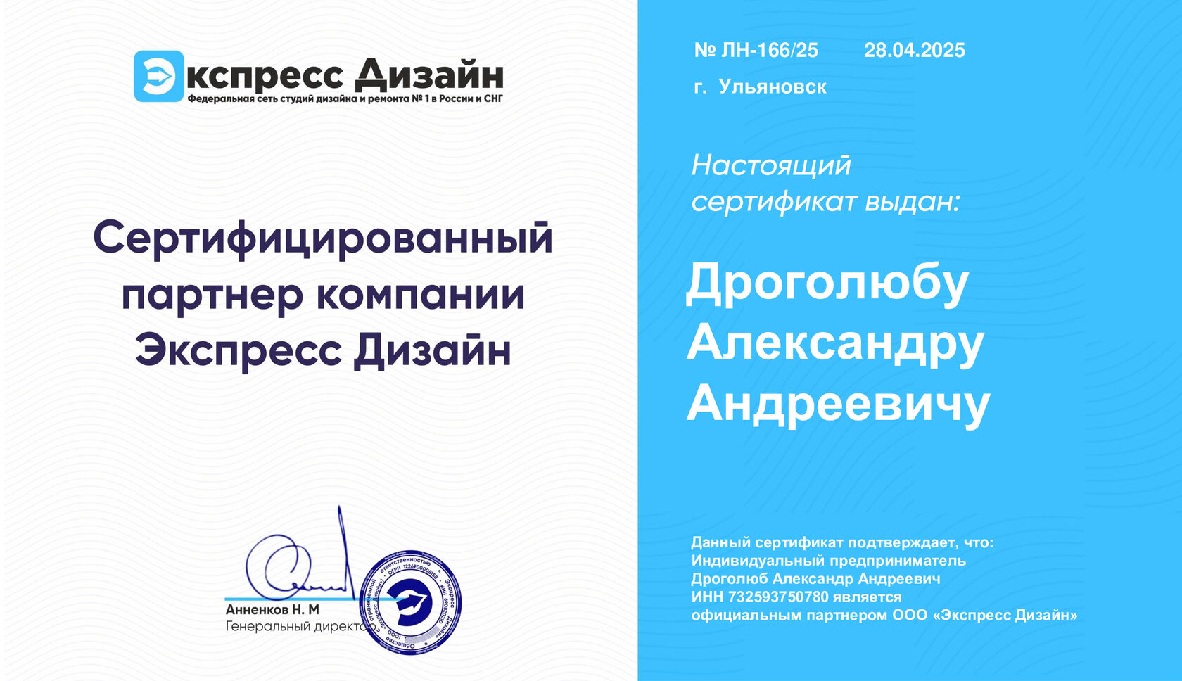 №ЛН 166/25 от 28.04.25